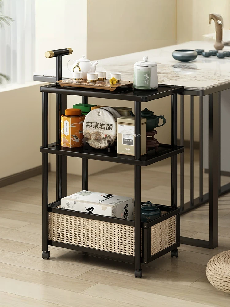 移動式マルチラック!多層フロア型ティーテーブルサイドテーブル、茶葉と茶具の収納に最適な小型キャリーラック。おしゃれで便利な収納ソリューション!