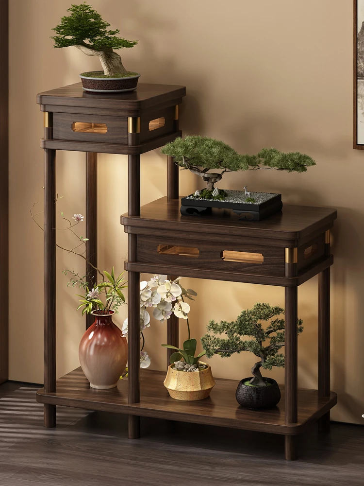 宋氏美学の実木製中式博古架 - 茶室にぴったりな植物展示ラック!美しいグリーンを引き立てるデザインで、落ち着いた雰囲気を演出。あなたの空間に優雅さをプラスします。