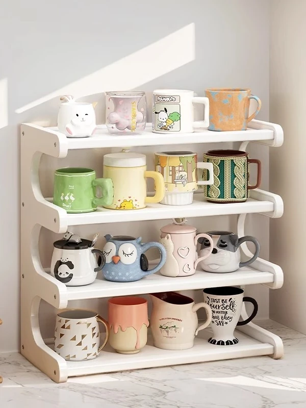 デスクトップ用マグカップ収納ラック|多層設計の家庭用カウンターテーブル|オフィスやダイニングに最適な水杯・ティーカップ整理棚!おしゃれで機能的な収納で、スッキリとした空間を実現!