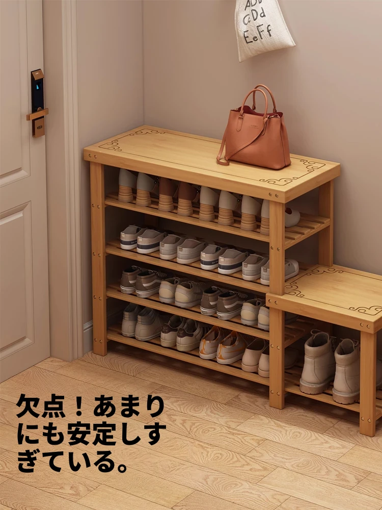 玄関用スツール兼収納シューズキャビネット - 小型の実木製で、おしゃれな中古デザイン!座って靴を履きながら、スッキリ収納も実現。これ一つで玄関がスッキリ整頓され、訪問者にも好印象を与えます!